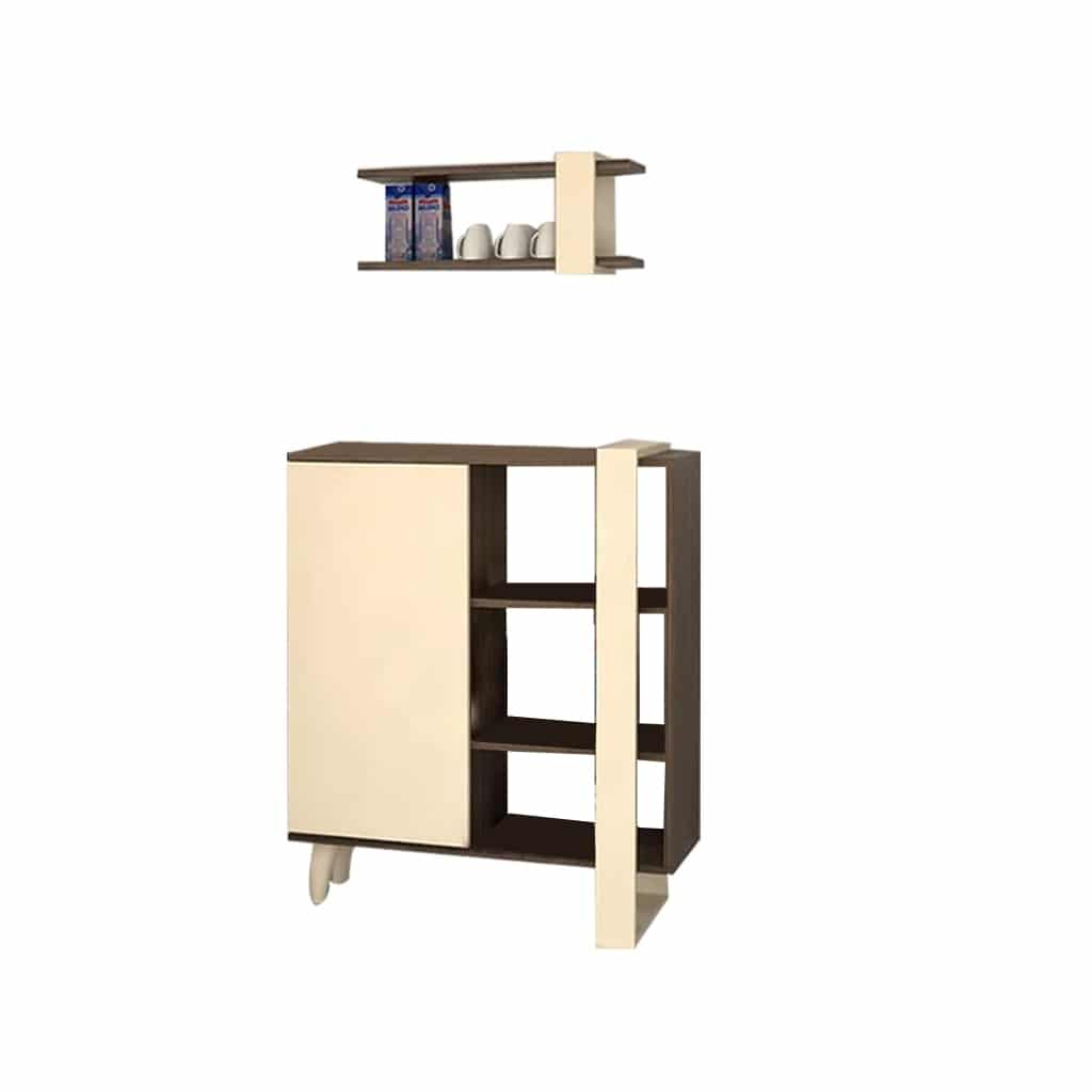 ركن قهوة مودرن لون بيج مع بني يجمع بين الجمال والوظائف المتعددة بتصميمه العصري والعملي. يتميز بألوانه الراقية من البيج والبني، مما يضفي لمسة عصرية ودافئة على مساحتك. يتضمن هذا الركن درفة وثلاثة أرفف مفتوحة لعرض الأشياء بشكل أنيق ومرتب، بالإضافة إلى وحدة أرفف بها رفين لتخزين الأشياء الصغيرة بشكل منظم.