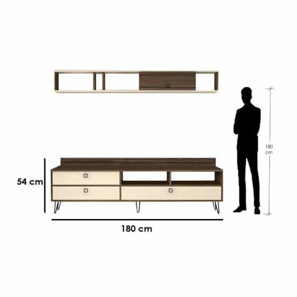 طاوله تلفزيون بيج مع بنى بالأرجل المعدنية تمثل قطعة أثاث عصرية وعملية لمساحة المعيشة. تجمع بين التصميم الجميل والوظائف المتعددة، مما يجعلها مثالية لعرض الأجهزة الإلكترونية وتنظيم الديكورات.