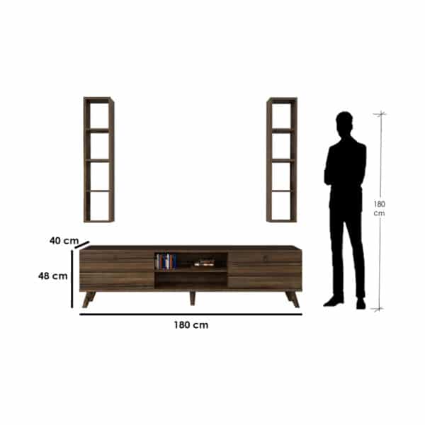 | المقاسات | مقاسات طاولة التلفزيون : العمق: 40 سم العرض: 180 سم الارتفاع: 48 سم مقاسات طاولة القهوة: العمق: 45 سم العرض: 100 سم الارتفاع: 48 سم مقاسات ركن القهوة: العمق: 40 سم العرض: 120 سم الارتفاع: 90 سم |