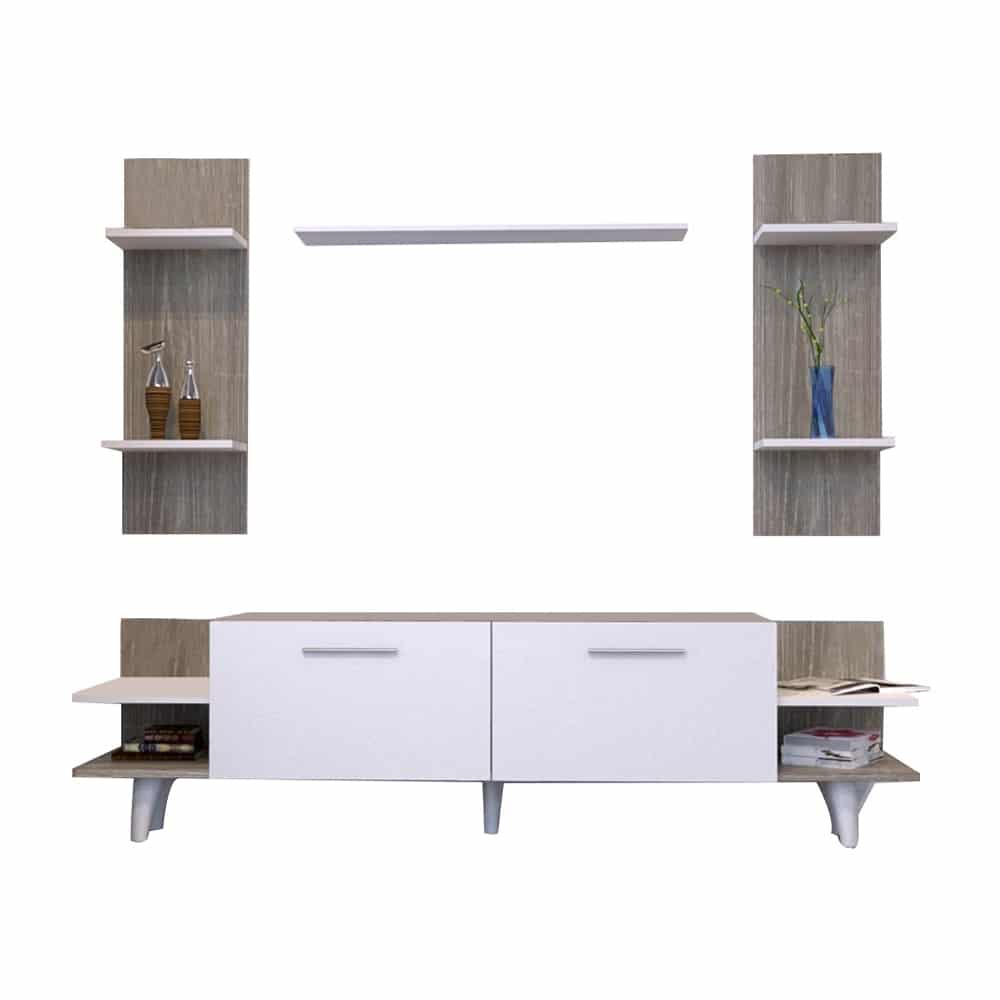 طاولة تلفاز أبيض مع رمادي و وحدتين أرفف 193