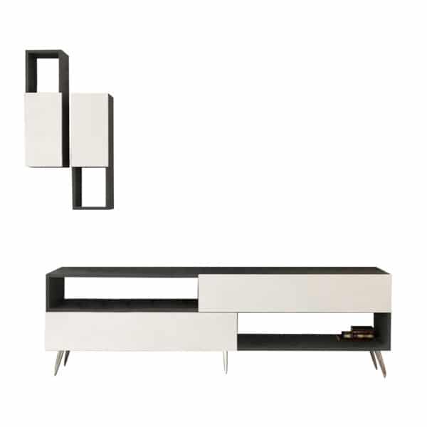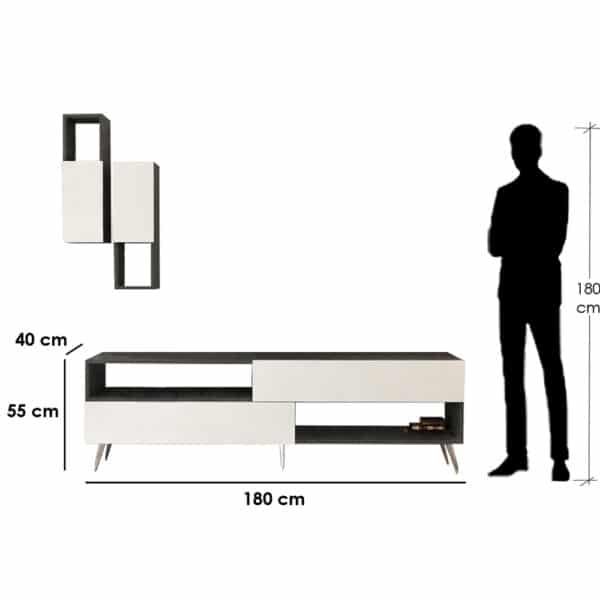 طاولة تلفاز لونين المتعددة الاستخدامات تمثل حلاً مثاليًا لتنظيم مساحة المعيشة وإضفاء لمسة ديكورعليها. تجمع بين التصميم العصري والوظائف العملية لتلبية احتياجات الديكور والتخزين في ألمنزل.