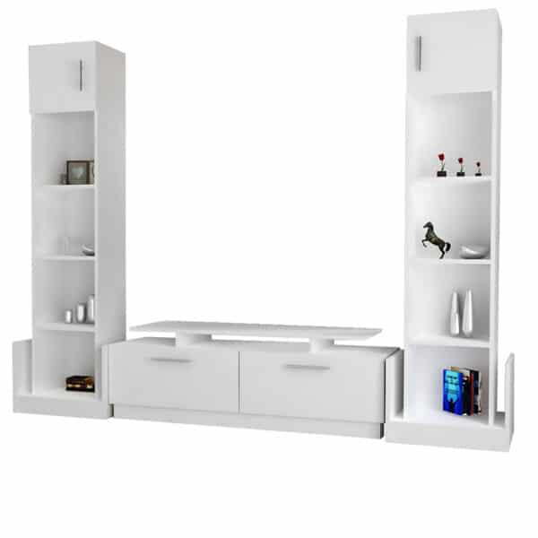 هي طاولة مميزة، تتكون من طاولة اساسية، بها درفتان كبيرتان، بأجمالي عرض 140 سم، وقطعة وسطى تشكل رف مفتوح يمكن وضع التلفاز أعلاها، ووضع جهاز الاستقبال تحتها، فهي تسمح بتمرير الكابلات الخاصة بالشاشة، لتوفر مساحة تخزين مغلقة، ورف بتصميم بسيط يمكن تعليقه أعلاها، ووحدتان بعرض حوالي 40 سم، وأرتفاع 190 سم، تحتوي كل وحدة على 5 أرفف، منها أربعة أرفف مفتوحة، ورف بدرفة .